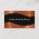 Cool modern Plumber business card template designed with copper looking design elements that frame your company name on the front of this double side business card that organises your contact details on the back and includes full colour printing.