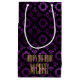 Deep purple makes a sophisticated background for the black pattern and gold text. It's classy with style. Very memorable birthday gift bag.