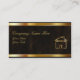 Classy real estate business cards with leather look background and simulated gold house symbol both printed on the front and text areas you can easily personalise for your real estate industry business. Best business cards for themes related to upscale property management, real estate appraisal, inspection, or agency.