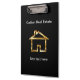 Classy custom acrylic real estate clipboard that includes a gorgeous simulated gold house symbol digitally printed on both sides, and text you can personalise, all designed for a real estate agent, Realtor, or broker.