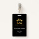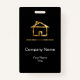 Classy real estate employee or field rep name badges with clip included in an elegant design that includes a gold coloured house symbol and geometric divider line that has a metallic appearance with name and company name templates you can customise online. Designed for a Realtor, Broker, agent or agency. Perfect to wear during an open house for a professional appearance.