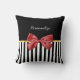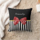 Classy Red Bow Black and White Stripes With Name Cushion