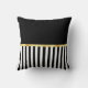 An elegant square throw pillow featuring vertical black and white stripes, embellished with a chic FAUX gold coloured stripe and a picture of a classy red ribbon style bow. Personalise it by adding the name of that special girl in your life. Flat printed image, NOT metallic or actual bow.