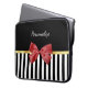 Classy Red Bow Black and White Stripes With Name Laptop Sleeve