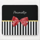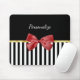 Classy Red Bow Black and White Stripes With Name Mouse Pad
