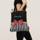 Classy Red Bow Black and White Stripes With Name Tote Bag
