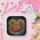 Celebrate an 80th birthday with this elegant customisable paper plate. The design features a magnificent gilded "80" with intricate baroque-style filigree, complemented by a vibrant red rose at its centre. Golden sparkles dust the black background, adding a touch of festive luxury. Customise it with the name and date to create a memorable detail for a milestone celebration.