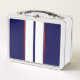 Classy Red, White, and Blue Racing Stripes Metal Lunch Box