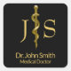 Classy Rod of Asclepius Gold on Black Medical Square Sticker