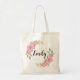 Custom wedding tote bag features a monogram and elegant boho style. Whimsical Botanical trendy floral design, with beautiful pink colours, watercolor flowers and greenery. Personalise with a first name. Congratulations!
