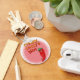 A cute red chilli pepper character. Custom key chains. Pink background.
