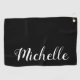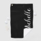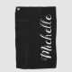 Go golfing in style with this Classy Script Black and White Personalised Womens Golf Towel. It is modern designed with name in trendy white calligraphy script lettering on solid black background. You can customise to any colour you wish. Perfect gift idea for a lady golfer!
