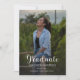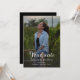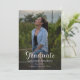 Classy script text "Graduate" two photo graduation announcement design featuring a large 5" x 7" photo on front with a smaller square photo on the back top and your graduation details below. The front template is set up for your graduating senior's name, class year and school on bottom underneath the script "Graduate". A black semi-opaque background overlays the photo to make the white text at the bottom pop. Available with assorted background colours or the design can be edited to change the back background colour and text colours as desired. "Graduate" text style can only be edited by designer, but the colour is editable. Composite design by Holiday Hearts Designs (rights reserved) with template placeholder photos provided via Unsplash.