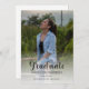 Classy script text "Graduate" two photo graduation announcement design featuring a large 5" x 7" photo on front with a smaller square photo on the back top and your graduation details below. The front template is set up for your graduating senior's name, class year and school on bottom underneath the script "Graduate". A white semi-opaque background overlays the photo to make the black text at the bottom pop. Available with assorted background colors or the design can be edited to change the back background color and text colors as desired. "Graduate" text style can only be edited by designer, but the color is editable. Composite design by Holiday Hearts Designs (rights reserved) with template placeholder photos provided via Unsplash.