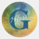 Classy Script Name with Intial | Rainbow Colour Classic Round Sticker