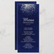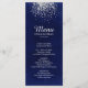 A simple classy design featuring a splash of silver glitter on a deep blue watercolor background with the word 'Menu' in a beautiful hand written font. You can add your menu details by clicking on the customise link. This is part of an elegant and modern wedding suite with matching table number cards, place cards, invitations and many more items.