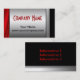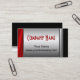 A silver metal look card with a striped grey border artistic design. Easily add your company name and your name or other text on the front of the card. Shown on the front is red with black text and on the back is red text and you can easily change the font style and colour as well as the black background. On the back is a smooth plain stainless steel metal look border on a black background which is perfect for adding more information. Personalise with your own text easily both on the front and on the back. A simple, but classic professional looking promotional card great for any business and occupation. Added to this great design is a red satin border on the front for a really unique professional business card.