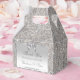 Personalised elegant custom silver favour boxes for weddings or any event with a beautiful printed silver sequins pattern, a cute shiny silver printed bow and ribbon and pretty printed diamond bling jewel. Text, font and colour of font can all be customised. If you need assistance customising your product please contact me through my store. I will be happy to help. I have matching products in my store.