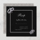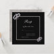 Stylish, elegant modern wedding rsvp in silver and black colours. With a shiny classy silver glitter frame encasing your event details, on a black background, with corner decorations off sparkly diamond wedding rings. All text is fully customisable to meet your requirements. If you would like help to customise your product, or would like matching products please contact me through my store and i will be very happy to help you.