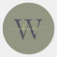Classy Simple Monogram Name & Initial Olive Green Classic Round Sticker