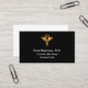 Classy yet simple Registered Nurse medical theme business cards created with a gold tone caduceus symbol with an angelic halo graphic and simple three line custom editable layout you can customise online. Designed for a Nurse that works in the field of home health, a visiting nurse, or private duty nurse.