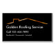 Roofing service business card magnet template including a black background and gold tone roof graphic designed for a roofing service, home remodeling, or construction contractor that does renovating.