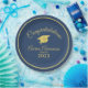 Simple yet stylish graduation party paper plates feature a gold circle around the edge and modern gold text on a navy blue background. A classy and elegant look for a high school or college graduate. A gold graduation cap mortarboard sits in the centre of the plate. Personalise with the graduating senior's name and graduation year.