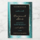 The design features a bright shimmering teal glitter frame with tiny sparkling stars on a plain black background.