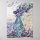Classy Textured Floral Vase Illustration Poster using Different Harmonic Colours of Blue,Beige and Green Colours.