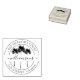 This classy and unique tropical return address stamp features double circular frame, broken in the middle, with a return address on the top and bottom, in elegant font. In the center there is a family name written in fancy calligraphy and lovely palm trees behind it. You can customize the design and create your own unique return address stamp by clicking the 'personalize' button and replacing the text with your name and address. Design it with me!
