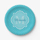 Classy Turquoise Blue Quatrefoil Monogram and Name Paper Plate