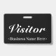This sophisticated badge design features the message "Visitor", and a customizable company name or other custom message. A badge like this could be used to identify that somebody at a workplace or business is an authorized guest/visitor. [~Z0000307]