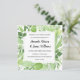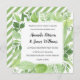 Modern and unique square invitation, the text appears at the centre among foliage in trendy watercolor green.