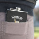 A fun and sharp looking design for whiskey lovers. And who isn't one? A splashing glass of whiskey on the rocks surrounded by the text stylised Whiskey Whisperer.