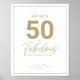 Simple white & gold "50 and Fabulous" birthday party sign with classy and elegant typography. Customise it easily with age, name, party date and venue.