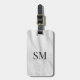 Classy White Leather Monogram Initials Luggage Tag