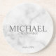 featuring personalised groomsman's name with title and wedding date in classic serif font style on white marble background.