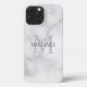 Classy White Marble Personalised Monogram and Name iPhone Case
