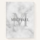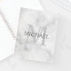 features personalised name in grey and monogram in light grey as background, in classic serif font style,
