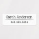 Elegant, waterproof property labels with two lines of customisable text, for example your name and telephone number. Black text on white background. You can change fonts and colours in the design tool.
