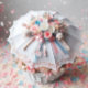 CLASSY GENDER NEUTRAL BABY SHOWER INVITATION FEATURING A LOVELY WHITE UMBRELLA WITH PINK AND BLUE FLOWERS AND BABY RATTLES.
