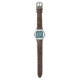 A classy ladies watch with croc embossed leather straps and silver alloy case .Features also include a teal with round gold ring design on the face.Geometric Numerals to match ,