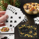 Playing cards with an elegant and stylish pattern. Pretty yellow sunflowers and green leaves surrounded by delicate gold chains. Black background. A black square with a faux gold foil border layered over top with your name and monogram inside.
