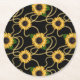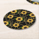 Classy Yellow Sunflowers Stylish Pattern on Black Round Paper Coaster