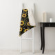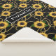 Sherpa blanket with an elegant and stylish pattern. Pretty yellow sunflowers and green leaves surrounded by delicate gold chains. Black background. A black rectangle with a white border layered over top with your personalised name inside.