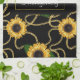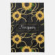 Classy Yellow Sunflowers Stylish Pattern on Black Tea Towel