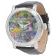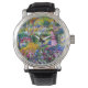 A beautiful classic watch featuring the iris garden by Giverny, painted by the French impressionist painter Claude Monet.