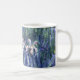 A beautiful classic flower mug featuring irises, painted by the French impressionist painter Claude Monet.