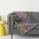 A quality printed throw has its advantages. This is a much finer weave throw than its loopier cousins, and though lighter, it is worth the investment for custom room accessorizing. The back is much prettier than the typical brown, and the fringe on the long sides very vivid, the selvage nicely done. Before photographing, I washed the throw in cold water, delicate, with a thicker woven throw the same size. On tumble dry low, this throw was dry in half the time as the other. This is a very practical quality if you use throws for furniture covers or to wrap up in frequently. The sleekness of the fabric makes it a great layer for accenting or protecting without the feeling of sitting on too much stuff. Perfect for napping or when you feel a light chill coming on. The color printing is beautiful and on this fabric, matched the design and color of my Photoshop image. This is an advantage for blending room fabrics and colors. The fringe on the short sides prints the colors from the design image and therefore varies from the side fringe. I streaked a white fractal line through the plaid pattern to give the illusion of weaving. This printed as crisp as an illusory thread, and put some white in the short side fringe, showing another advantage of print vs loomed- for artistic purposes, line lines, detail, and color integrity can be planned and preserved. My loomed throws have color limitations and more of a needlepoint texture. Print throws reproduce an exact image. The throw felt a little stiff straight out of the package, but this went away in the first delicate wash. Of course I searched the wash water for ink or bleeding and there was none.