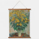 Claude Monet, Jerusalem Artichoke Flowers, 1880. Old famous painting with yellow flowers in an impressionist style. Printed on a wood-framed wall-hanging tapestry. CCO license, public domain art.